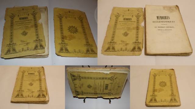 |  Ref. : 10619 Mémoires Ecclésiastiques concernant le District d'Évron, Diocèse du Mans, pendant la Révolution de 1789 à 1802. - Mayenne.GERAULT M.  Imprimé par H. Godbert, Éditeur à Laval (Mayenne). 1847 Brochure sous couverture jaune imprimée et décorée en noir,
