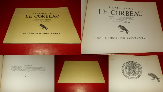 |  Ref. : 10622 Le Corbeau, par Edgar Allan Poe. - Nouvellement traduit en vers équivalents et décrypté avec des commentaires arithmétiques, géométriques & alchimiques, par Pierre Pascal. - 1977.POE Edgar Allan. PASCAL Pierre (Traducteur).  Éditions Arthos - Carmagnola. - 1977. - Avril 1978 Broché, couverture jaune imprimée & illustrée en noir (infimes rousseurs au second plat),