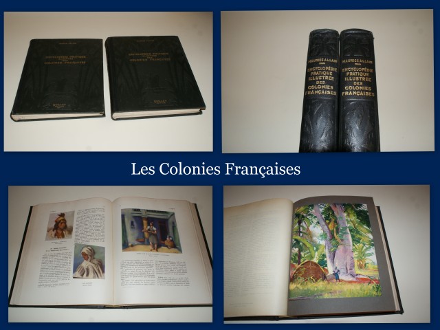 Ref. : 10623 Encyclopédie Pratique Illustrée des Colonies Françaises. - Quillet. - 1931. - Complet en 2 tomes.ALLAIN Maurice. - Illustré par Jacques SIMON. - Marcel SOLLIER. - Ferdinand FARGEOT. - Ch. GARRY. - Louis ROLLET. - SALGÉ. - BOULARD-DEVÉ. -  Librairie Aristide Quillet, Éditeur. Paris. 1931 Deux volumes en reliures de l'éditeur aux dos chagrinés en vert empire et aux plats décorés à froid en percaline verte,