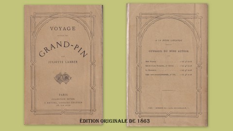 Ref. : 10618 VOYAGE AUTOUR DU GRAND-PIN. LAMBER Juliette. [Mme Edmond ADAM].  J. Hetzel, Libraire-Editeur. - Collection Hetzel. - Rue Jacob à Paris. - Sans Date. - Vers 1863 Broché, couverture jaune imprimée en noir (petites traces de manipulation),