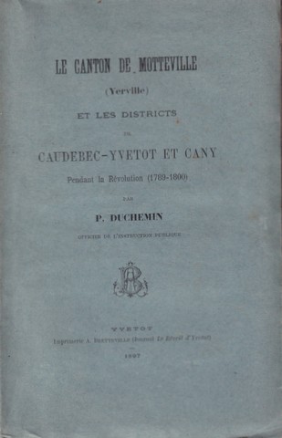 La livre "Le Canton de Motteville (Yerville) et les districts de Caudebec - Yvetot et Cany. - Pendant la Révolution (1789-1800)", écrit par Pierre-Polovic Duchemin est une étude historique qui se concentre sur les évènements survenus dans les régions de Motteville, Yerville, Caudebec-Yvetot et Cany pendant la Révolution française, de 1789 à 1800.